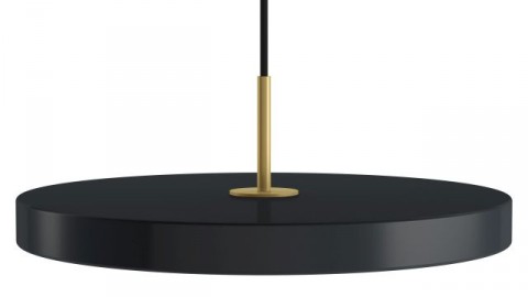 Minimalistyczna lampa wisząca ma kształt dysku.