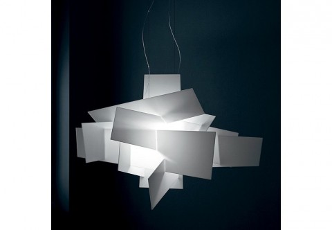 Lampę wiszącą Big Bang wykonano w białych lub kolorowych paneli. Panele przenikają się, zachodzą na siebie tworząc unikatową, futurystyczną kompozycję.