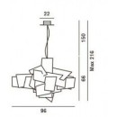 Lampę wiszącą Big Bang wykonano w białych lub kolorowych paneli. Panele przenikają się, zachodzą na siebie tworząc unikatową, futurystyczną kompozycję.