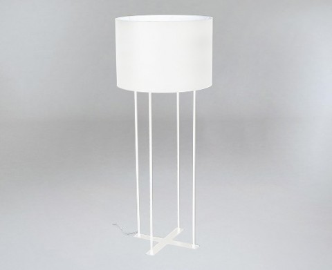 Lampa podłogowa Bonar składa się z podstawy w kształcie krzyża, czterech prostych nóg i okrągłego klosza.