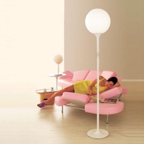Prosta, subtelna, biała lampa podłogowa idealnie sprawdzi się w nowoczesnym wnętrzu. Mlecznobiały, szklany klosza emituje miękkie światło.