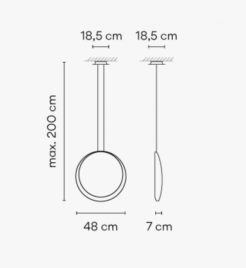Kolekcja Cosmos składa się z lamp wiszących, spłaszczonych form o różnych rozmiarach, które tworzą iluzję optyczną wiszących kul wydających się unosić w powietrzu. Lampa w kolorze białym.