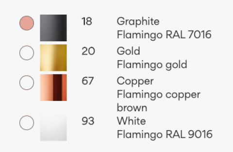 Dostępne kolory: grafitowy, złoty, miedziany, biały.