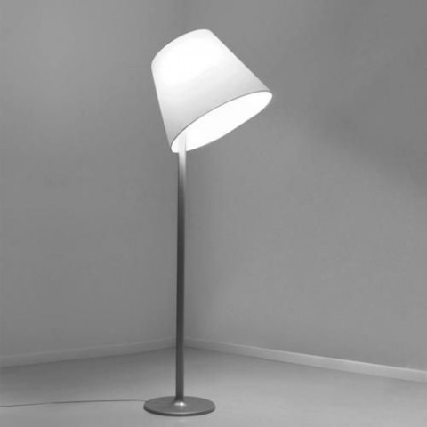 Melampo to elegancka lampa podłogowa wykonana z aluminium z materiałowym kloszem osadzonym na plastikowej ramce. Klosz można odchylić pod kątem 30 stopni.