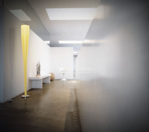 Lampa podłogowa wykonana została w włókna szklanego i metalu. W włókno szklane zostały wplecione nici węglowe nadają lamie czarny kolor lub kevlarowe odpowiadające za żółta barwę.