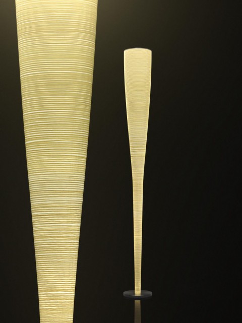 Lampa podłogowa wykonana została w włókna szklanego i metalu. W włókno szklane zostały wplecione nici węglowe nadają lamie czarny kolor lub kevlarowe odpowiadające za żółta barwę.