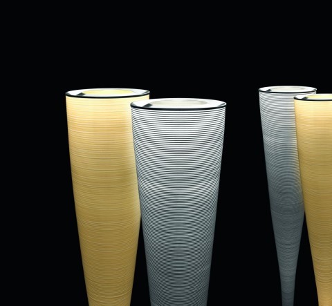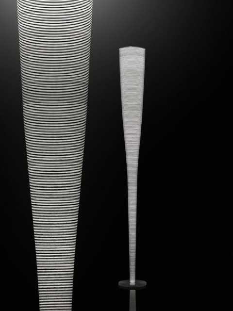 Lampa podłogowa wykonana została w włókna szklanego i metalu. W włókno szklane zostały wplecione nici węglowe nadają lamie czarny kolor lub kevlarowe odpowiadające za żółta barwę.