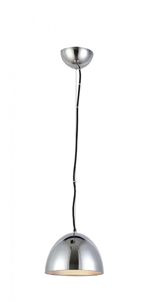 Nieduża, półkolista lampa wisząca wykonana została z metalu.