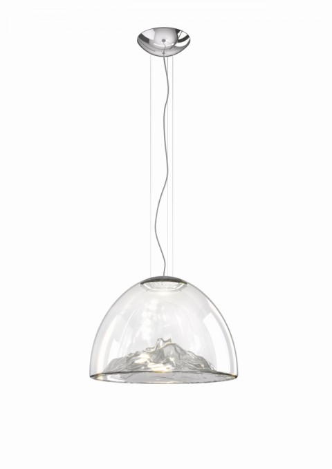 Lampa wisząca Mountain View przypomina szklana kulę w której zamknięto pasmo górskie.