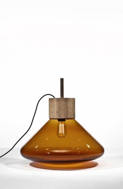 Połączenie tradycyjnie dmuchanego szkła i dębu przykuwa wzrok.