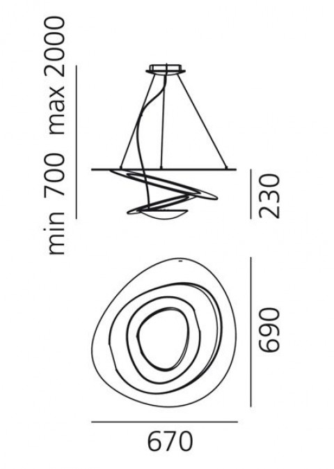 Lampa wisząca Pirce to najbardziej znany produkt Artemide. Przypomina unoszącą się w powietrzu spiralę. Zwężający się ku dołowi klosz tworzy magiczny efekt formy i światła. Źródło światła ukryte w dolnej części klosza jest niewidoczne. Światło skierowane jest ku górze i odbite od sufitu.