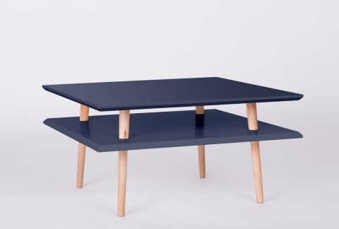 Bardzo funkcjonalny niski stolik kawowy z dużym kwadratowym blatem posiada półeczkę, na której można położyć drobne przedmioty.