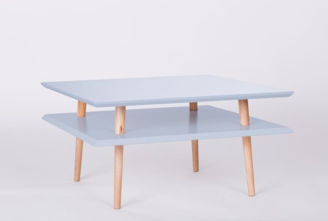 Bardzo funkcjonalny niski stolik kawowy z dużym kwadratowym blatem posiada półeczkę, na której można położyć drobne przedmioty.