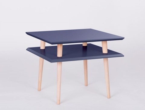 Bardzo funkcjonalny średni stolik kawowy z kwadratowym blatem posiada półeczkę, na której można położyć drobne przedmioty.
