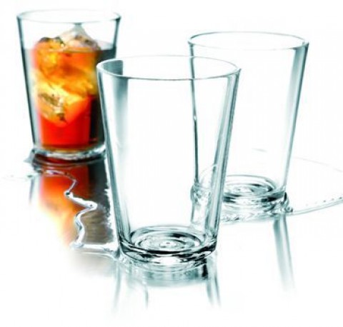 Komplet zawiera 4 szklanki. Szklanki wykonane są z grubego szkła. Dno wyglądem przypomina rozchodzące się od środka fal. Szklanki odporne są na wysokie temperatury.