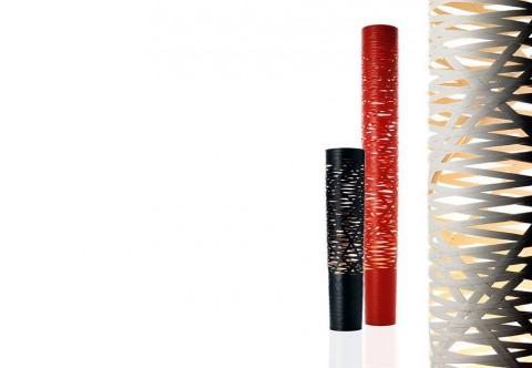 Lampa podłogowa Tress została wykonana z materiału kompozytowego na bazie włókna szklanego. Faktura lampy przypomina kosz.