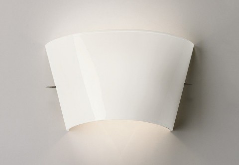Kinkiet Tutu został wykonany z dmuchanego, polerowanego szkła. Wewnętrzna strona kinkietu jest biała, zewnętrza dostępna jest w kolorze białym lub kość słoniowa. W zależności od potrzeb kinkiet można zamocować wąską lub szeroką częścią klosza skierowaną w dół.