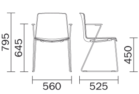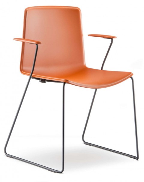 Siedzenie krzesła zostało wykonane z polipropylenu i obsadzone na metalowej ramie.