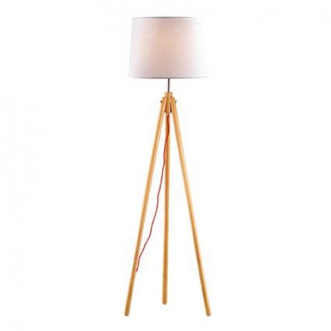 Lampa podłogowa York wykonana została z metalu, drewna, pcv i tkaniny. Uwagę zwraca drewniany, trójnoży stelaż.